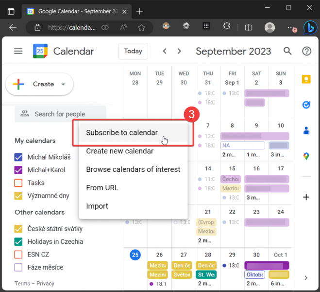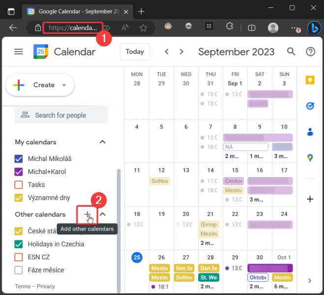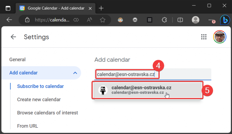 4. White "calendar@esn-ostravska.cz" into the text box.